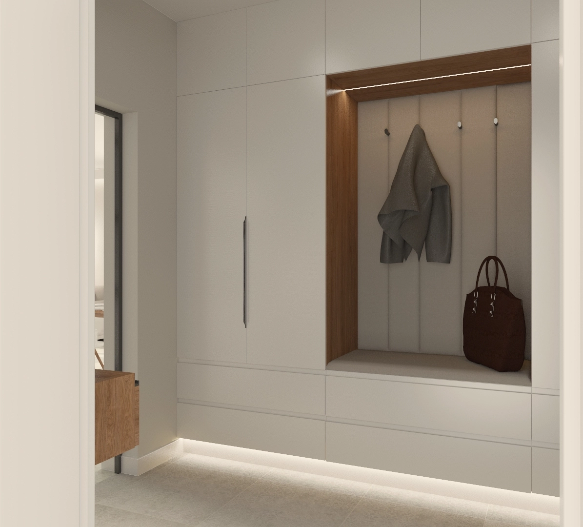 Projekt dla rodziny, w której każdy ma własny świat – i każdy z nich jest wyjątkowy. Ciepłe drewno orzechowe i skandynawska biel budują spokojną bazę, którą przełamują odważne akcenty: paryska sypialnia córki z neonowymi skrzydłami i dynamiczny pokój syna z własną ścianką wspinaczkową. Natura i fantazja pod jednym dachem.