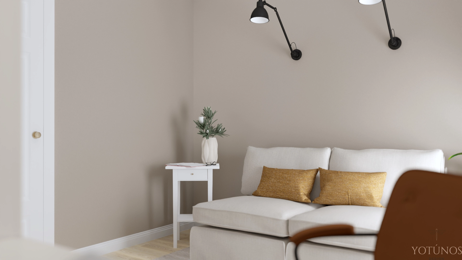 Projekt dla pary, w którym jeden kolor stał się osią całego wnętrza. Szałwiowa zieleń pojawia się w kuchni, sypialni i na drzwiach, a złote detale spajają wszystko w spójną całość. Ciepłe, dopracowane mieszkanie z charakterem i duszą.