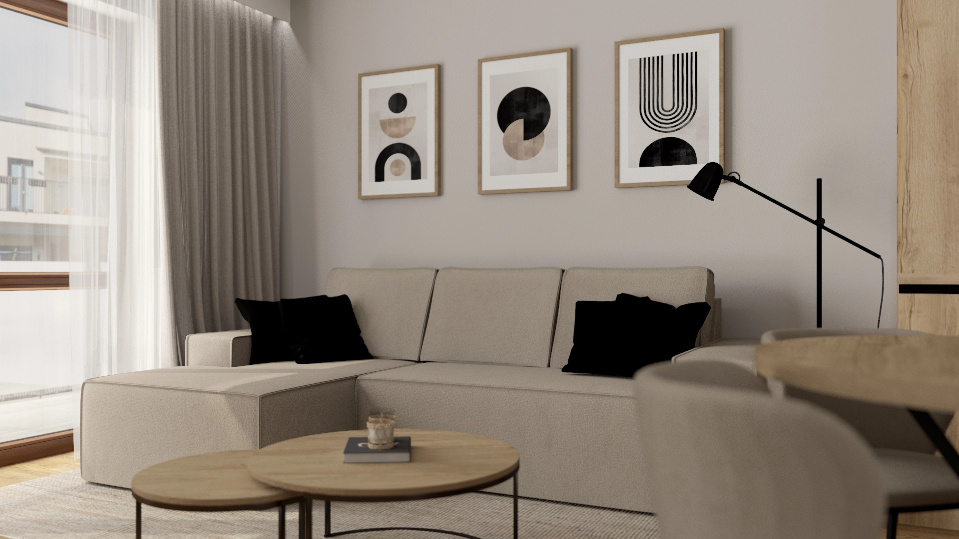 Beże, drewno, lamele i dużo naturalnego światła – dokładnie tak, jak chcieli. Projekt stworzony w odpowiedzi na konkretną wizję klientów: bez zaskoczeń, bez eksperymentów, za to z pełnym spokojem i dbałością o każdy detal. Drewniana biblioteczka jako przegroda między kuchnią a salonem to subtelny akcent, który robi różnicę. Czasem największą sztuką jest słuchanie.